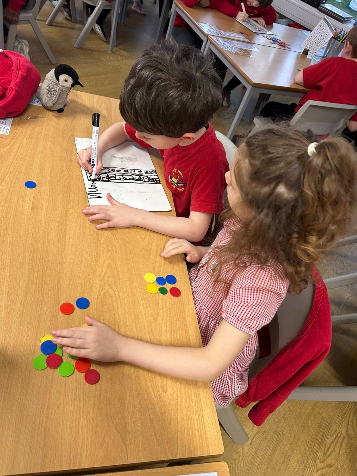 Lots of great teamwork in Year 1 maths this week! The children have been learning about doubles with their partners and using counters to support their understanding 🌟